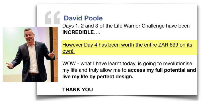 NOW is the best time for you to take the 'Life Warrior' challenge.